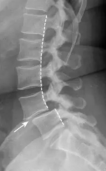척추뼈가 앞으로 빠지면서 척추뼈 내를 관통하는 신경 다발이 눌린다. 이 때문에 조금만 걸어도 다리가 아프고 저려서 잘 걷지 못한다(간헐적 파행).