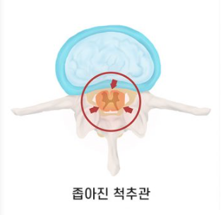 척추관협착증은 척추체 사이에 척수가 지나가는 관이 있는데 이 관이 노화로 인해 좁아져 신경을 압박하게 되는것을 말한다.